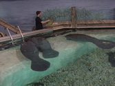 The Parker Aquarium is one of only three in the state accredited for restoring the health of these escapees of the dinosaur era. Manatees are truly ugly pre-historic creatures that seem to have somehow captured the imagination of the public. Apparently, ill equipped by their primeval intelligence to cope with modern water activity, they’re constantly in the way of powerboat prows and propellers. But, mishaps and ailments at least afford Snooty companionship. The size of the aquarium limits the manatee occupants to three, and although they’re not cute, they are interesting to watch, especially during feeding times when they’re thrown lettuce leaves—a much clearer observation than you will ever get in the wild.
